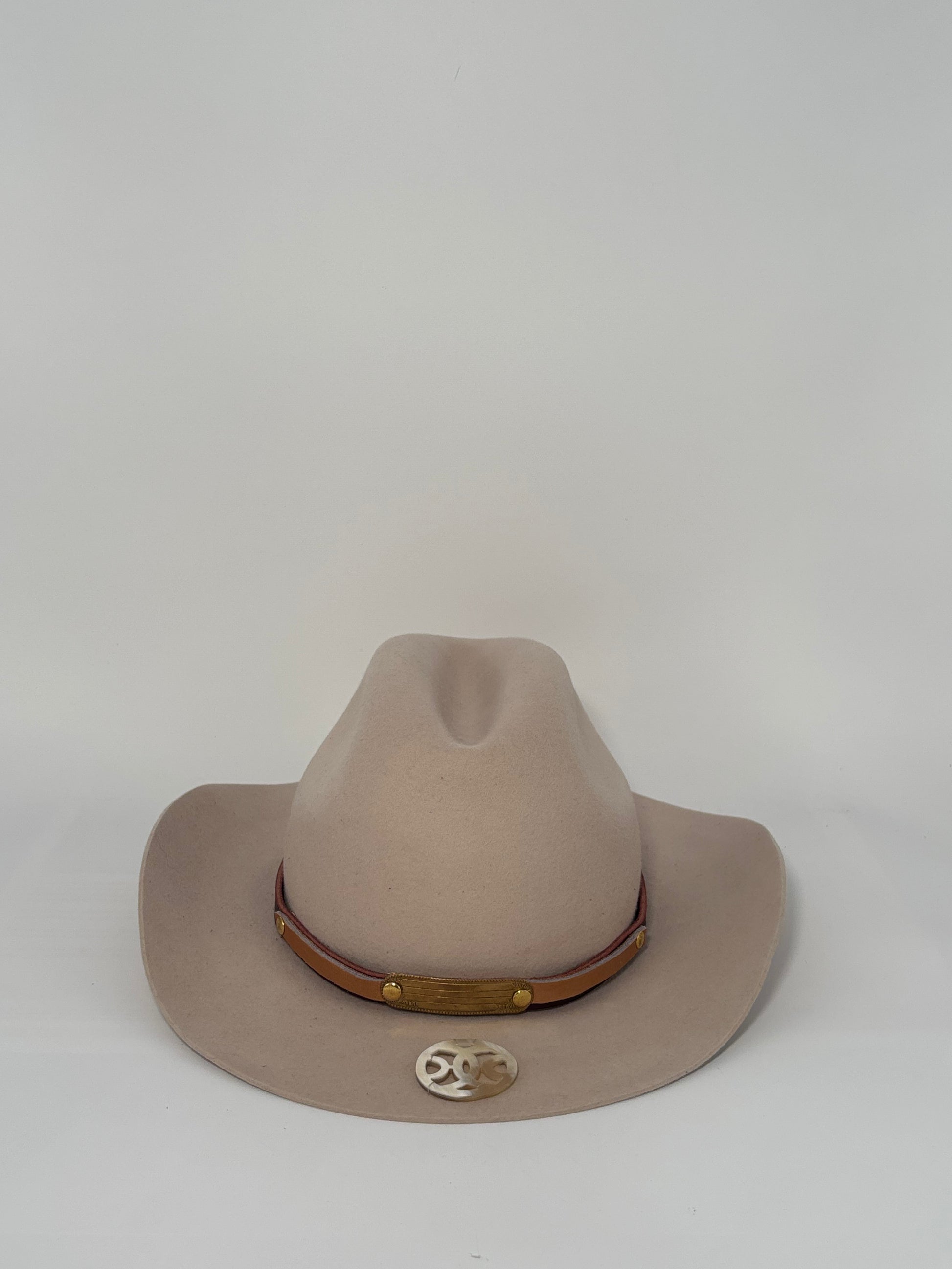 Cattleman's crease 5 inches high. The 3 inch winged brim.