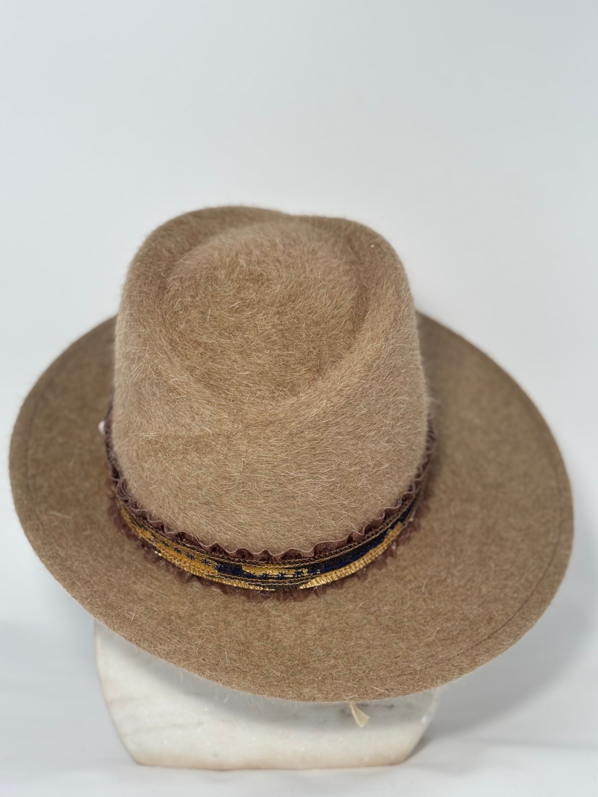 Earth toned fuzzy milliner weight felt.